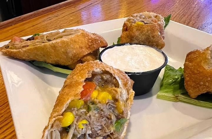 🫔Pork Egg Rolls – Egg Rolls stuffed with Smoked Pulled Pork, Cheddar Cheese, Scallions, Black Beans and Corn with a side of Sassy Sauce.